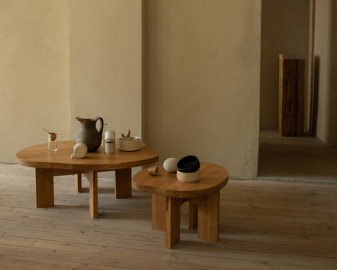 Beginning as a rough sketch to create an organic form, Pond has transcended various scales and applications. Initially made as a steel shielded light for the Yaffa restaurant project, it was become a wooden art object, dining table, as well as coffee and side table. When applied to the use as a table top- the soft curves provide a new take on the tradition kidney shaped tables of the past.
